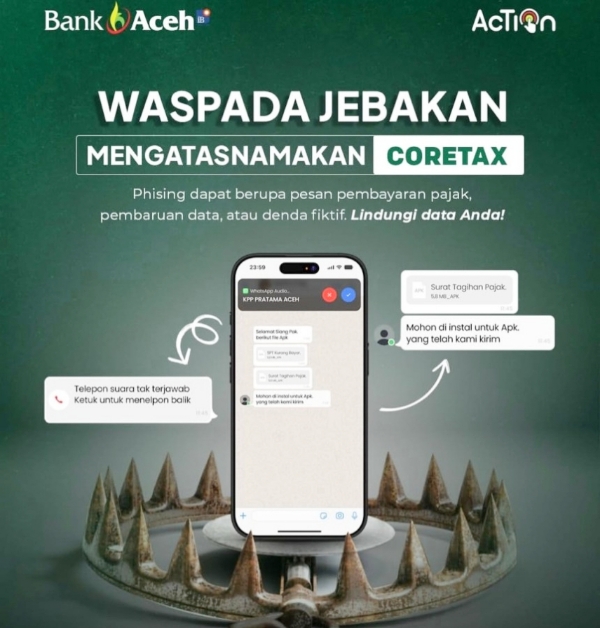 PT Bank Aceh Syariah mengeluarkan imbauan resmi kepada seluruh nasabah dan masyarakat luas untuk meningkatkan kewaspadaan terhadap modus penipuan digital baru yang mengatasnamakan sistem perpajakan terbaru “CoreTax”.