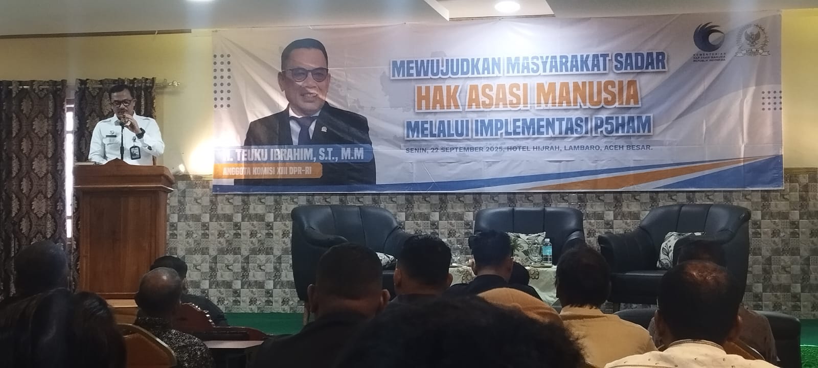 Demikian hal itu disampaiakn Anggota Komisi XIII DPR-RI Fraksi Demokrat HT Ibrahim, ST, MM pada acara sosialisasi dan implementasi P5HAM di Hotel Hijrah Gampong Siron Kecamatan Ingin Jaya, Aceh Besar senin (22/9/2025).