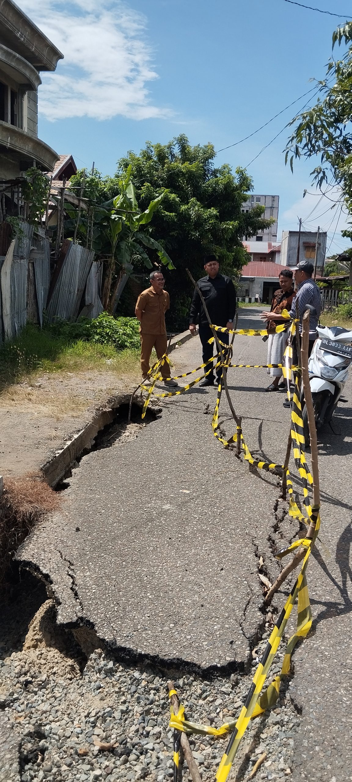 Wakil Ketua Komisi III anggota DPRK Banda Aceh Fraksi PKS Tuanku Muhammad, S. Pd. I., M. Ag meninjau kondisi jalan amblas di kawasan Gampong Pango Raya Kecamatan Ulee Kareng Banda Aceh Selasa (20/1/2026).