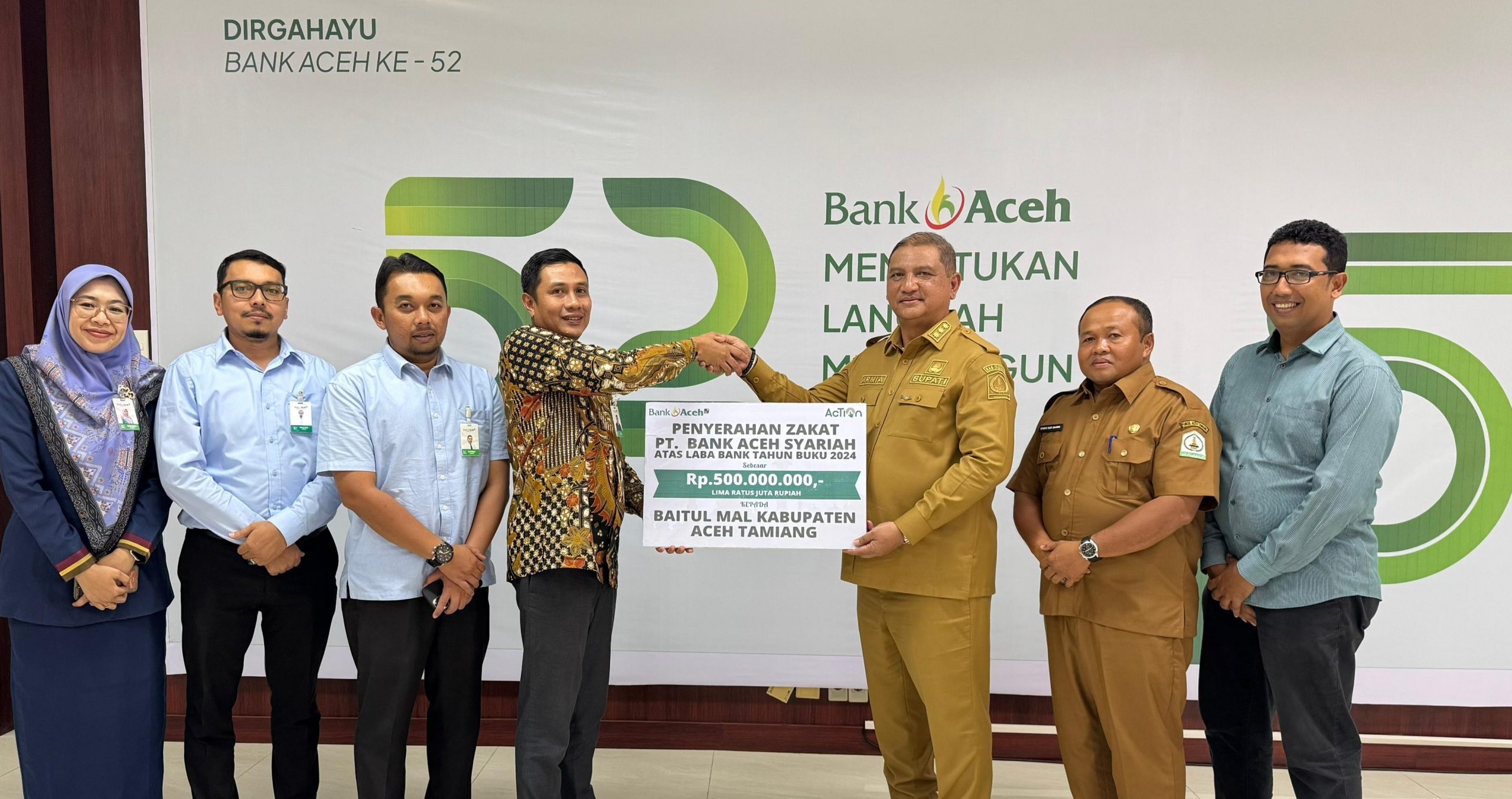Bank Aceh Syariah Cabang Kuala Simpang memperoleh Rp 500 juta dari zakat perusahaan yang langsung diserahkan kepada Pemkab Aceh Tamiang melalui Baitul Mal setempat.