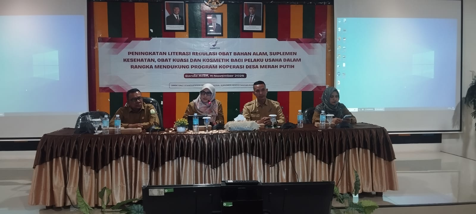 Kegiatan literasi regulasi di bidang obat bahan alam, Suplemen Kesehatan, Obat Kuasi dan Kosmetik yang digelar di Aula kantor Balai Besar Pengawasan Obat dan Makanan (BBPOM) di Banda Aceh Senin (11/11/2025).