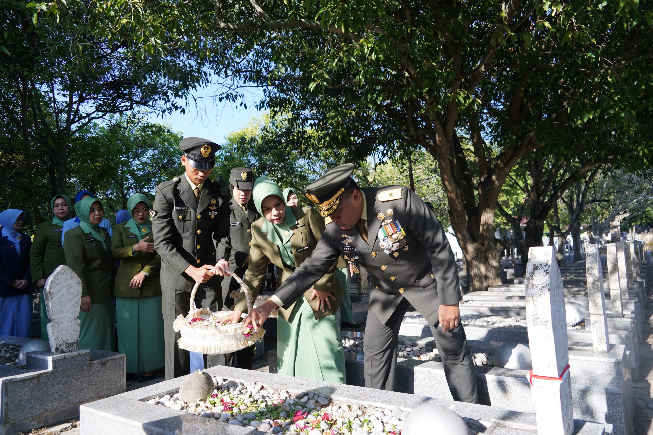 Kasdam Brigjen TNI Yudha Fitri bersama rombongan menggelar penghormatan kepada arwah para pahlawan dan peletakkan karangan bunga di tugu makam pahlawan sebagai simbol penghargaan atas jasa-jasa mereka.