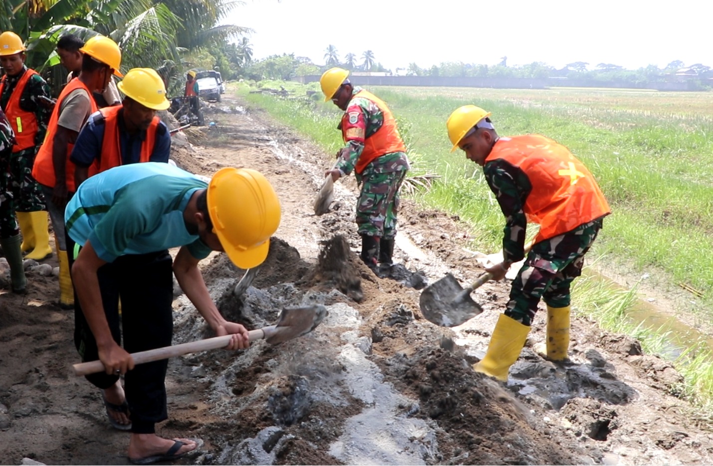 Untuk memperkuat ketahanan pangan nasional Kodam IM mempercepat pembangunan irigasi Tersier di Kecamatan Pante Bidari dan Simpang Ulim Kabupaten Aceh Timur.