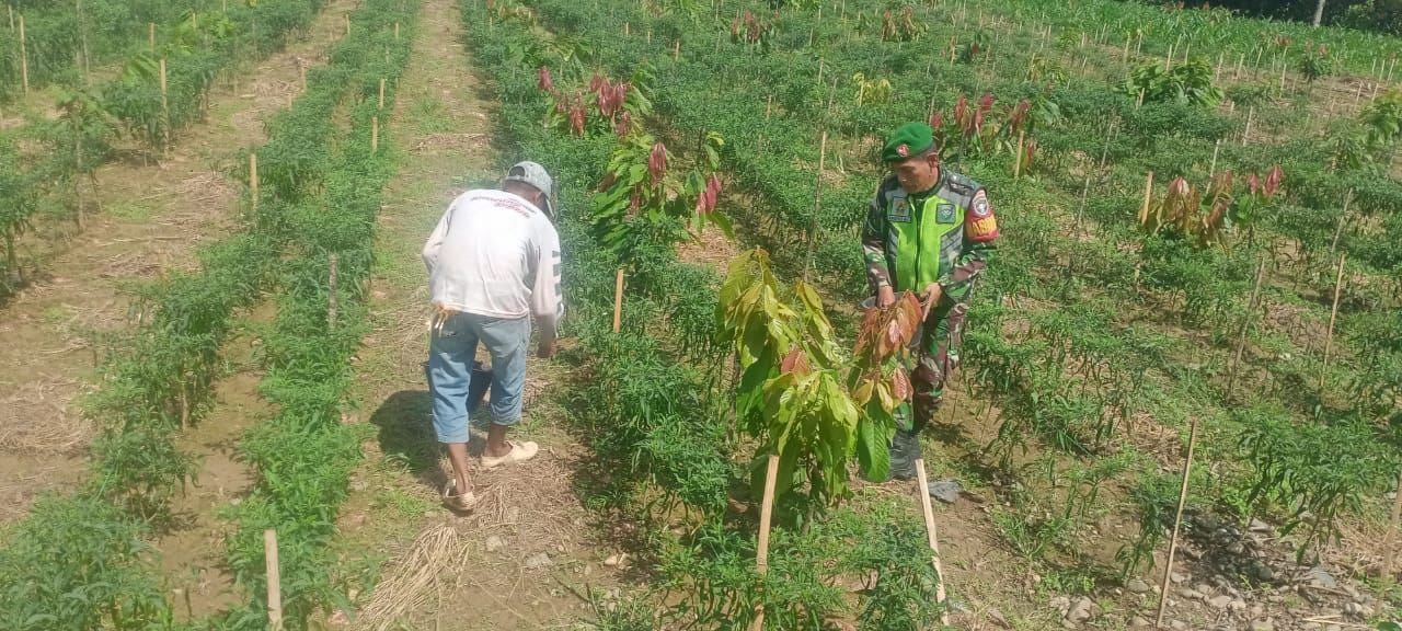 Para Babinsa turun langsung ke perkebunan dan persawahan dalam membantu warga mulai merawat hingga menanam.