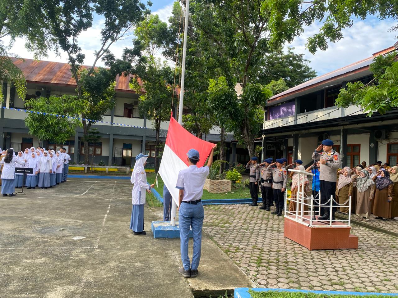 Upacara bendera merah putih di lingkungan pendidikan itu turut dihadir Perwira Seksi Administrasi Ipda Zulfahmi Ilyas, Kepala Unit Jibom Ipda Joko Harsono, Kepala Unit KBRN Ipda Syahrul, serta personel dari Subden Perlawanan Teror (Wanteror), Penjinak Bom (Jibom) dan Kimia Biologi Radiologi Nuklir (KBRN).
