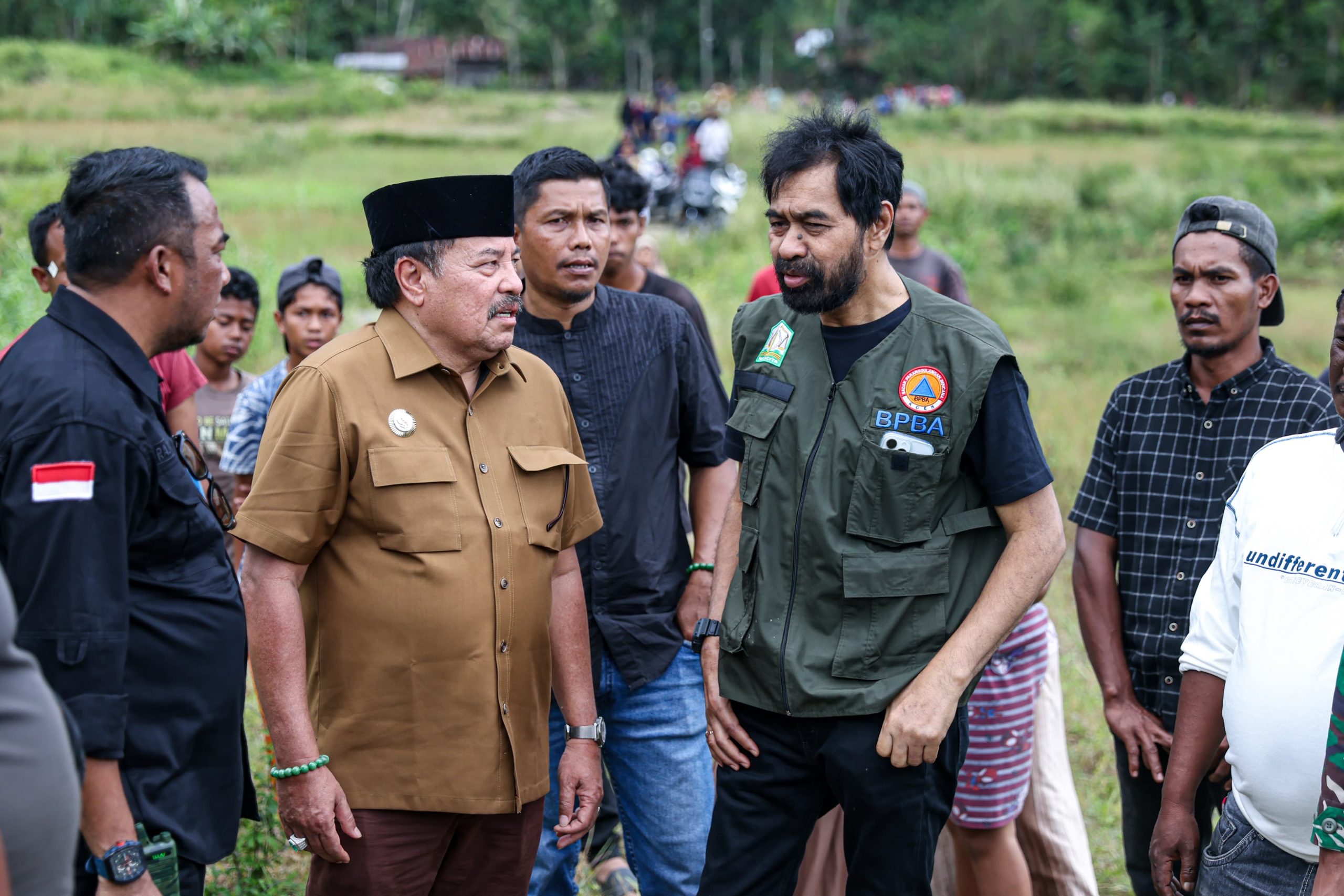 Gubernur Aceh Muzakir Manaf mengunjungi kawasan terdampak banjir bandang di lokasi terparah Beutong Ateuh Banggalang, Kabupaten Nagan Raya Jumat sore (5/12/2025).