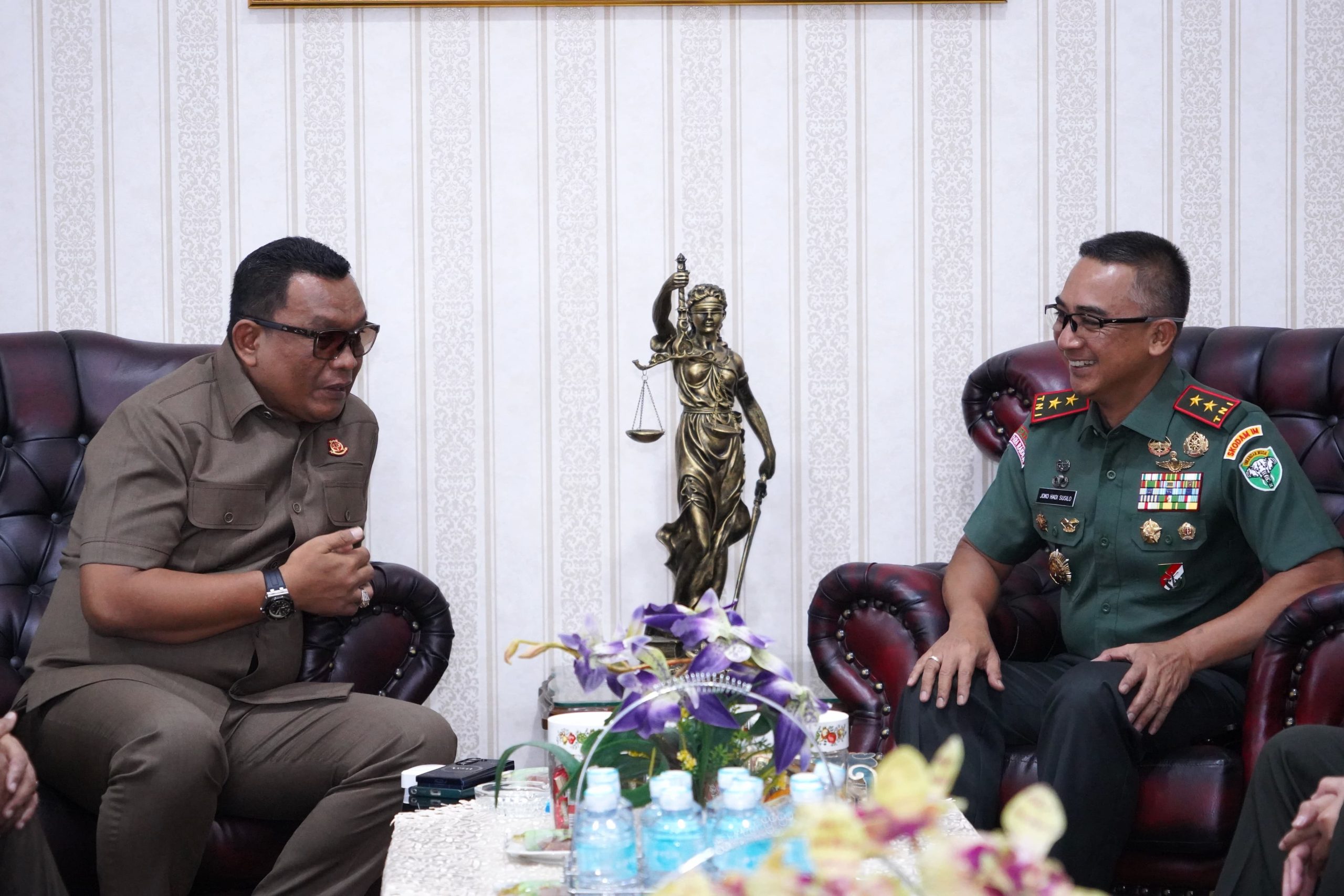 Pangdam IM Mayor Jenderal TNI Joko Hadi Susilo, S.I.P menggelar silaturahmi dengan Kepala Kejaksaan Tinggi (Kajati) Aceh Yudi Triadi, S.H., M.H di Kantor Kejaksaan Tinggi Aceh Desa Lamcot Kecamatan Darul Imarah Aceh Besar, Selasa (16/9/2025).