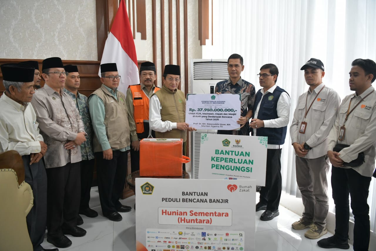 Bantuan tersebut diharapkan dapat mempercepat proses pemulihan, khususnya pada sektor keagamaan dan pendidikan, serta meringankan beban masyarakat Aceh yang terdampak bencana alam.