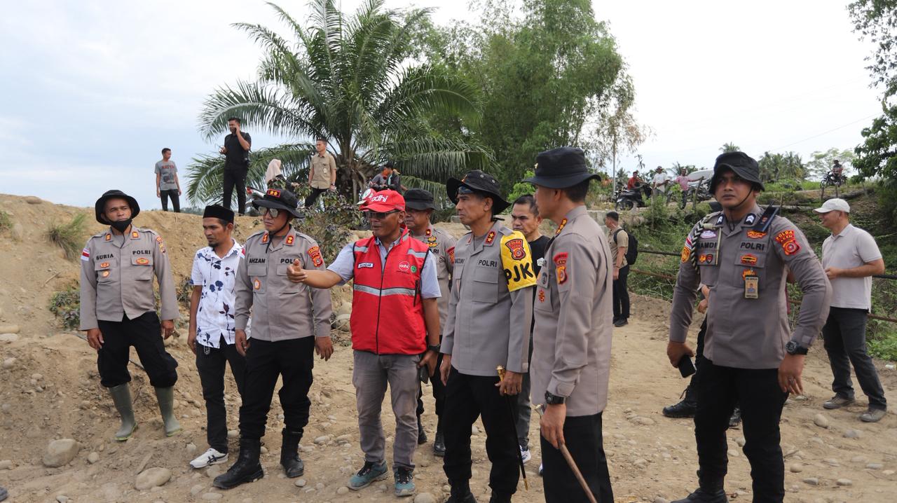 Kapolda Aceh Irjen Pol Drs Marzuki Ali Basyah, M.M bersama sejumlah pejabat terkait meninjau langsung kondisi Jembatan Bailey milik Polri yang berada di Desa Lhok Cut Kecamatan Sawang Kabupaten Aceh Utara Sabtu (14/3/2026) yang pondasinya bergeser akibat luapan sungai.