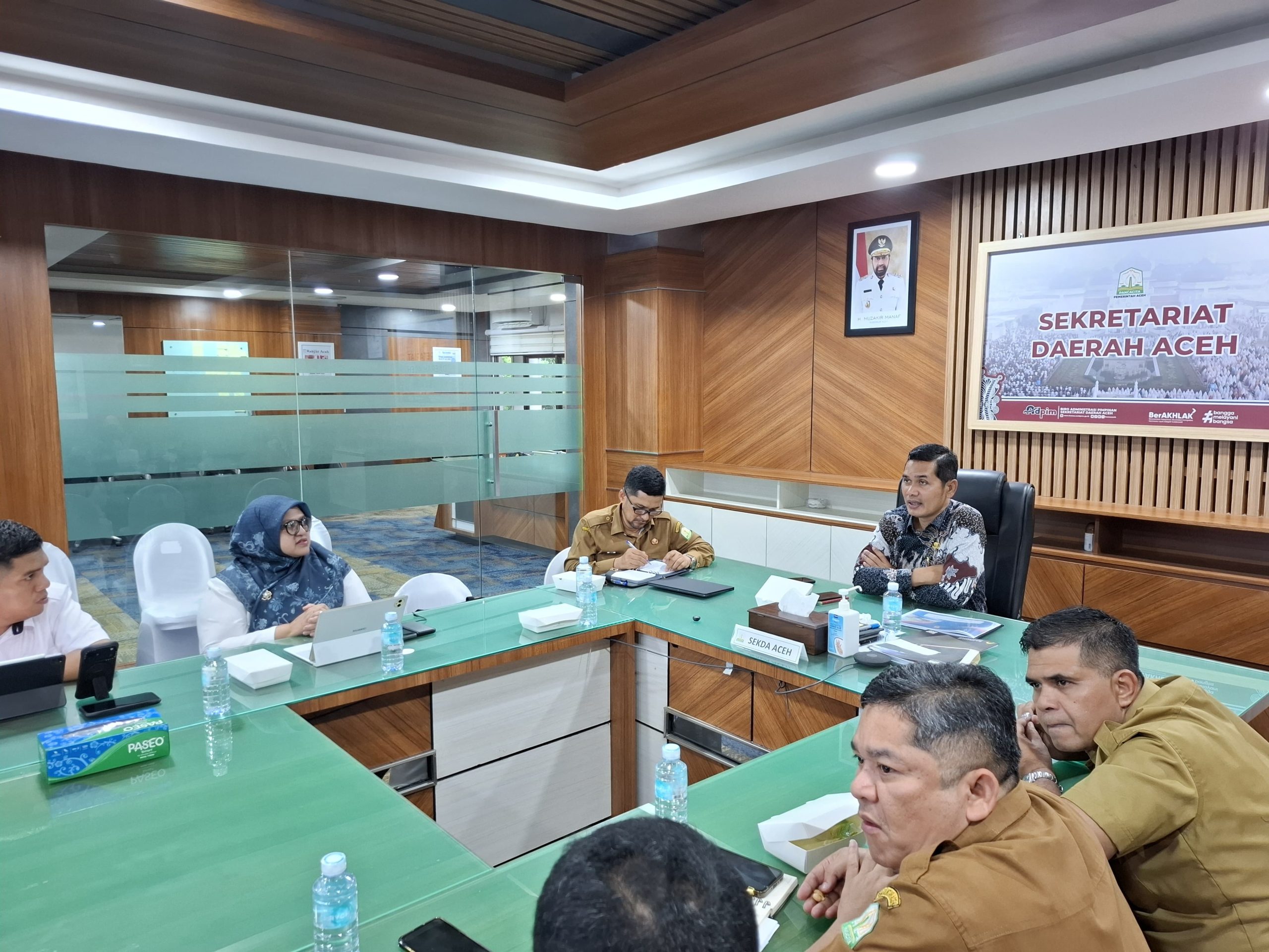 Sekretaris Daerah Aceh M Nasir, S.IP, MPA memimpin rapat pembahasan Program Sekolah Rakyat bersama Kementerian PUPR melalui Satker Prasarana Strategis Aceh dihadiri oleh jajaran SKPA terkait di Ruang Rapat Sekda Aceh Selasa (25/11/2025).