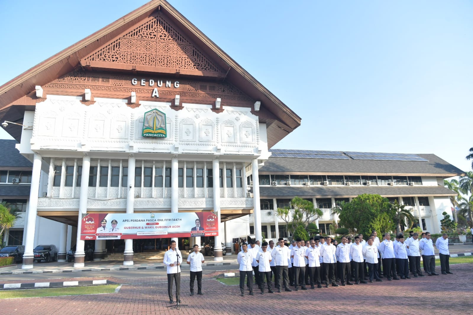 Hal itu disampaikan Sekda Aceh M Nasir saat memimpin apel pagi perdana pasca libur Hari Raya Idul Fitri 1447 Hijriah diikuti oleh seluruh kepala Satuan Kerja Perangkat Aceh (SKPA), para pejabat struktural, serta aparatur sipil negara (ASN) dan non-ASN di lingkungan Sekretariat Daerah Aceh di halaman Kantor Gubernur Aceh Rabu (25/3/2026).