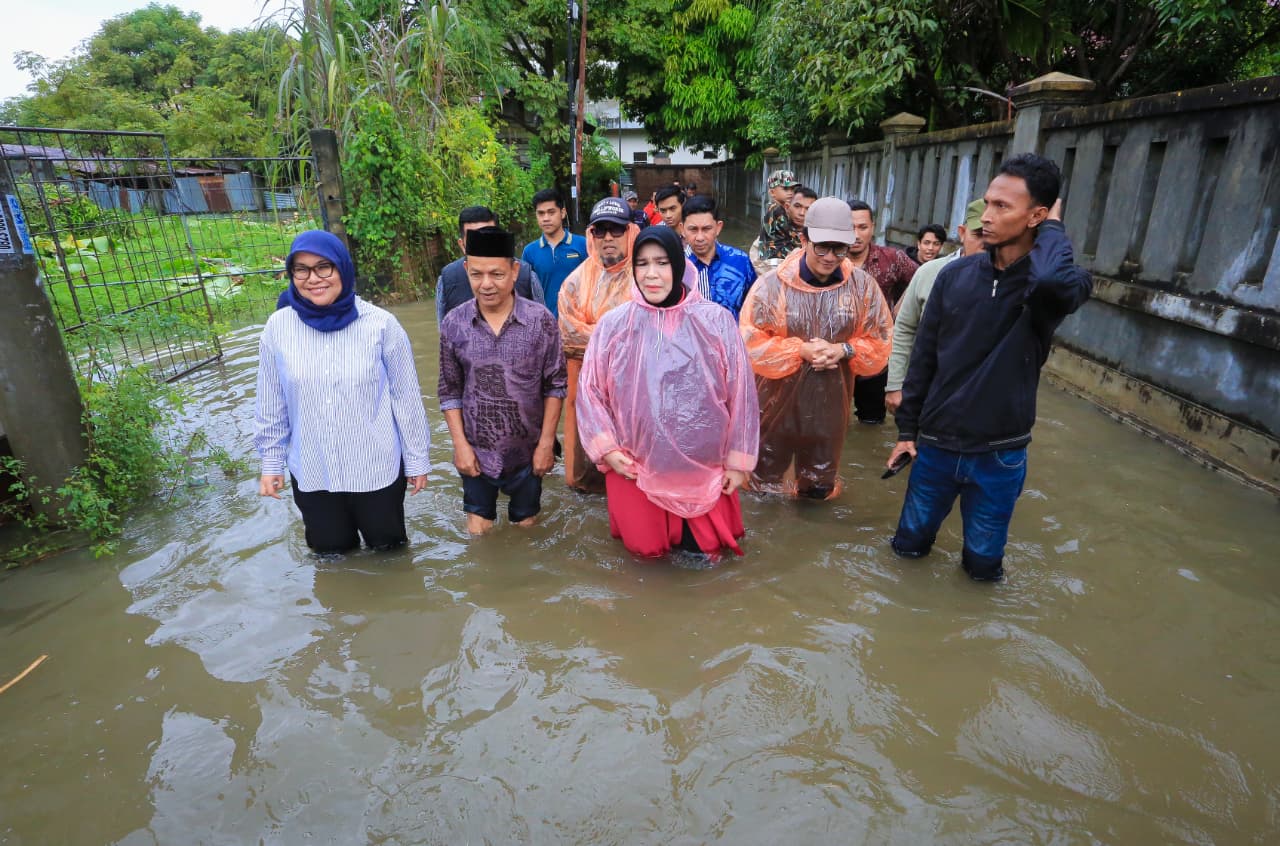 Wali Kota Banda Aceh Hj Illiza Sa’aduddin Djamal, SE sejumlah anggota DPRK Banda Aceh meninjau langsung sejumlah titik banjir yang melanda Banda Aceh Kamis (27/11/2025).